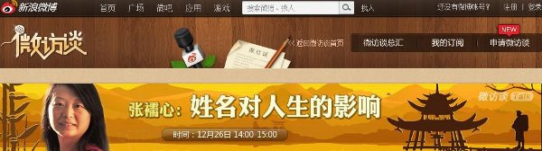 2012年12月26日下午,起名通创始人张襦心老师做客“新浪微访谈”,广大网友强势“围观”。